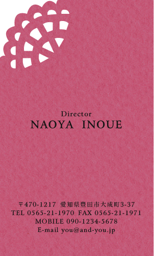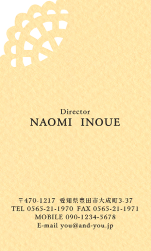 女性に人気 型抜き名刺 NI-PA-778 カテゴリ > 女性に人気 型抜き名刺 表 ※オンマウスで拡大表示いたします。 サイズ 91mm × 55mm このデザインで注文する このデザインでFAX注文 裏面デザインについて このデザインをお気に入りに追加 この商品に対するお問い合わせ 色違いデザイン NI-PA-071NI-PA-107NI-PA-073NI-PA-074 NI-PA-109NI-PA-106NI-PA-105NI-PA-712 NI-PA-777NI-PA-779 簡単料金計算 用紙を選択 カラー用紙/コーラル (凸凹した柄の入った用紙) 枚数を選択 203050100150200300400500 金額をチェック 送料はこちら レビューコメント レビュー・コメントはまだありません。 閉じる レビューをお書きください このデザインのレビュー(ご感想)をぜひご記入ください レビュー入力欄 レビューは不特定多数の方がご覧になりますので、 個人情報などを含まれないようにご注意ください。 投稿していただいた内容について、弊社で不適切と判断した場合には、 お断りなく非掲載とさせていただく場合がございます。 レビュー記入者の種別 閲覧者 購入者 レビュー記入者の名前(ニックネーム) 下の数字を入力: