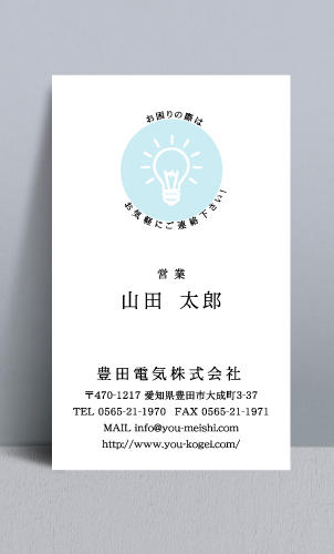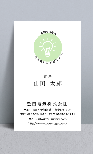 職業別名刺:電気屋 denkiya-NI-006 カテゴリ > 電気屋・電気工事店 名刺デザイン 表 イメージ ※オンマウスで拡大表示いたします。 サイズ 91mm × 55mm このデザインで注文する このデザインでFAX注文 裏面デザインについて このデザインをお気に入りに追加 この商品に対するお問い合わせ 色違いデザイン denkiya-NI-007denkiya-NI-008 簡単料金計算 用紙を選択 ハイトーン (最もスタンダードな白い用紙) マイルド (白味を少し抑えたオフホワイトの用紙) サニー (クリーム色の用紙) グレイ (緑がかった明るい灰色の用紙) 光沢紙 ※両面印刷不可 ※ラインストーン不可和紙(両面新大礼紙) (両面にレーヨン繊維が漉き込まれています) 半透明(トレーシングペーパー) ※両面印刷不可 ※ラインストーン不可半透明(NTパイル) ※両面印刷不可 ※ラインストーン不可厚紙:オフホワイト 枚数を選択 203050100150200300400500 金額をチェック 送料はこちら レビューコメント 2 件のレビュー・コメントがあります。 亀 様(閲覧者) 2023年03月19日 ピカーンと光る電球がポップなオレンジ色で表現されていてぱっと目に留... 続きを読む 亀 様(閲覧者) 2023年03月19日 ピカーンと光る電球がポップなオレンジ色で表現されていてぱっと目に留まるデザインです。オレンジの丸のまわりにメッセージが添えられていて親しみやすさを感じます♪シンプルながらも職業と気持ちが伝わります。 竜一 様(閲覧者) 2017年11月01日 電球のイラストが描かれている。一目で「電気屋さんの名刺」と分かって、同業者の私としては非常に嬉しい思いが致しますね。使われている色も、日の光を浴びている時のような、じんわりとした温かな気持ちになってとても素敵だと感じました。イラストの近くに一言メッセージが添えてあるのも、素朴で優しい印象を相手に与えて良いですね。 閉じる レビューをお書きください このデザインのレビュー(ご感想)をぜひご記入ください レビュー入力欄 レビューは不特定多数の方がご覧になりますので、 個人情報などを含まれないようにご注意ください。 投稿していただいた内容について、弊社で不適切と判断した場合には、 お断りなく非掲載とさせていただく場合がございます。 レビュー記入者の種別 閲覧者 購入者 レビュー記入者の名前(ニックネーム) 下の数字を入力: 関連デザイン penki-ay001 penki-ay002 penki-ay003 penki-ay004 penki-ay005 penki-ay006 aipc017 aypc024 aywa012 aywa046 dogtrainer-ni013 dogtrainer-ni014