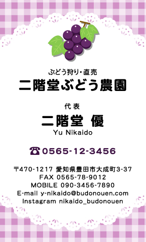 ぶどう農家・農場・農園・ファーム・農業 名刺デザイン ぶどう農家 農場 農園 ファーム 農業の職業別にデザインした名刺!おしゃれで可愛いデザインから、シンプルにかっこいいデザインまで盛り沢山!あなたのイメージに合ったデザインの名刺をお選び下さい。 × 閉じる « 前へ12 33件 ~ 56件 (全 56件) budo-farm-CY-006色違い有 budo-farm-CY-005色違い有 budo-farm-CY-004 budo-farm-CY-003色違い有 budo-farm-CY-002色違い有 budo-farm-CY-001 budo-farm-CA-018色違い有 budo-farm-CA-017色違い有 budo-farm-CA-016色違い有 budo-farm-CA-015色違い有 budo-farm-CA-014色違い有 budo-farm-CA-013色違い有 budo-farm-CA-012色違い有 budo-farm-CA-011色違い有 budo-farm-CA-010色違い有 budo-farm-CA-009色違い有 budo-farm-CA-008色違い有 budo-farm-CA-007色違い有 budo-farm-CA-006色違い有 budo-farm-CA-005色違い有 budo-farm-CA-004色違い有 budo-farm-CA-003色違い有 budo-farm-CA-002色違い有 budo-farm-CA-001色違い有 « 前へ12 33件 ~ 56件 (全 56件) 新登場カテゴリはこちら! 男性に人気のカテゴリはこちら! 女性に人気のカテゴリはこちら! 人気の型抜きシリーズ 他の名刺屋さんでは買えない! 名刺 + α ショップ様にオススメ 当店自慢のレーザー加工 名刺以外にもこんな商品 オプション