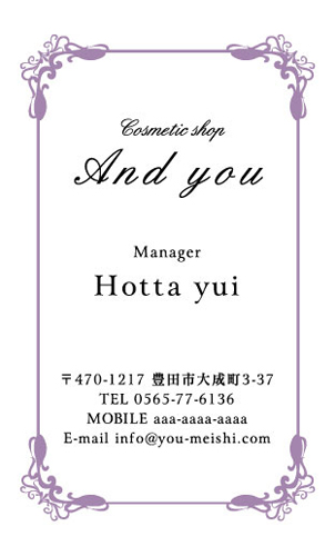 お問い合わせはこちら : (0565)21-1970  info@you-meishi.com