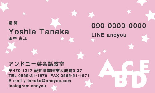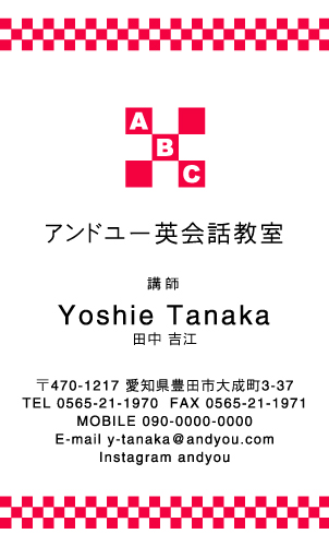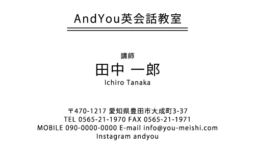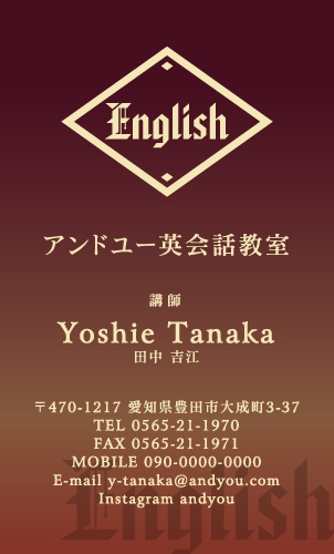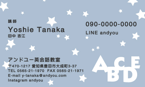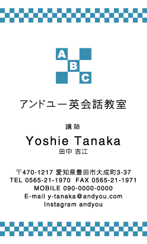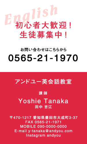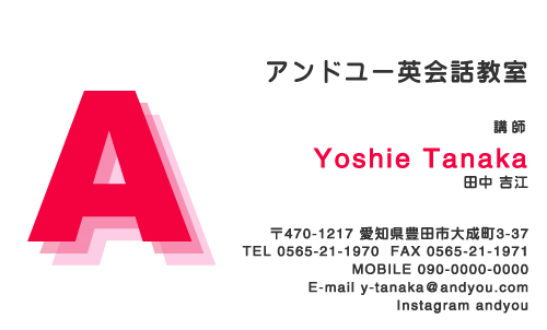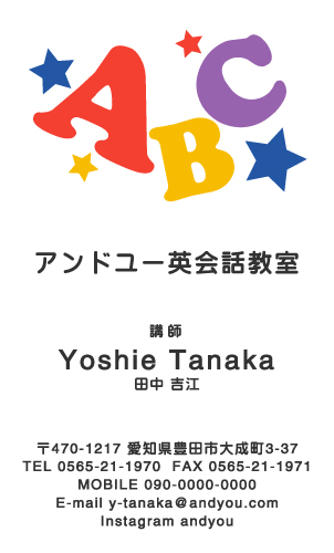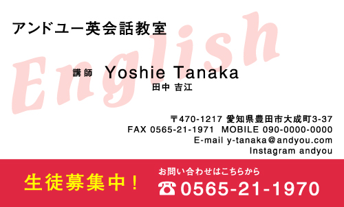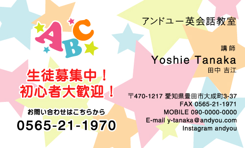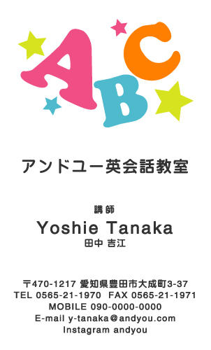 英会話教室・英語塾・塾講師 名刺デザイン 英会話教室・英語塾 講師 教師さん専用の職業別にデザインした名刺!おしゃれで可愛いデザインから、シンプルにかっこいいデザインまで盛り沢山!教室のイメージに合ったデザインの名刺をお選び下さい。デザインに迷ったらこちらを確認!! × 閉じる 12次の32件 » 1件 ~ 32件 (全 58件) english-AB-005 english-AB-004 english-AB-003 english-AB-002 english-AB-001 english-CA-033色違い有 english-CA-032色違い有 english-CA-031色違い有 english-CA-030色違い有 english-CA-029色違い有 english-CA-028色違い有 english-CA-027色違い有 english-CA-026色違い有 english-CA-025色違い有 english-CA-024色違い有 english-CA-023色違い有 english-CA-022色違い有 english-CA-021色違い有 english-CA-020色違い有 english-CA-019 english-CA-018色違い有 english-CA-017色違い有 english-CA-016色違い有 english-CA-015色違い有 english-CA-014色違い有 english-CA-013色違い有 english-CA-012色違い有 english-CA-011色違い有 english-CA-010色違い有 english-CA-009色違い有 english-CA-008色違い有 english-CA-007色違い有 12次の32件 » 1件 ~ 32件 (全 58件) 新登場カテゴリはこちら! 男性に人気のカテゴリはこちら! 女性に人気のカテゴリはこちら! 人気の型抜きシリーズ 他の名刺屋さんでは買えない! 名刺 + α ショップ様にオススメ 当店自慢のレーザー加工 名刺以外にもこんな商品 オプション