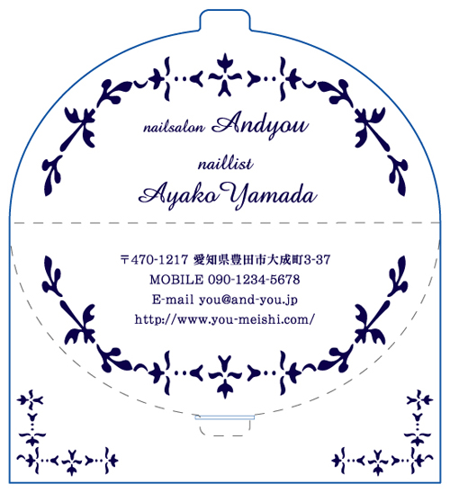 ふたを開くとお名前や連絡先情報が記載された、変形二つ折り名刺です。
