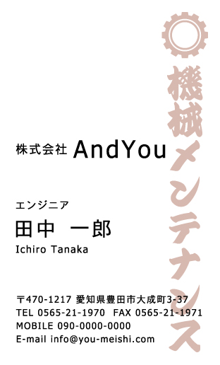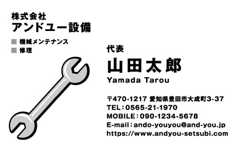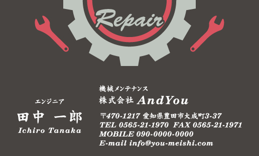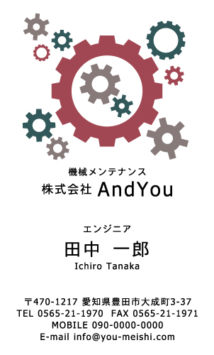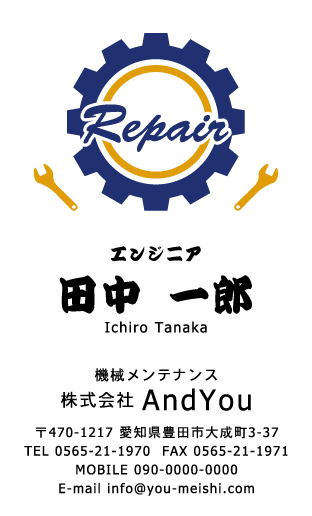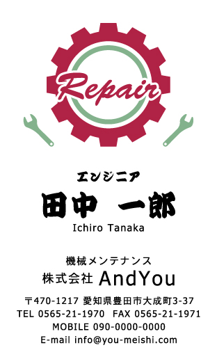 機械メンテナンス・整備士・エンジニアさん専用の名刺デザインです。