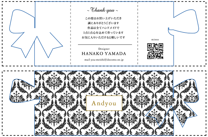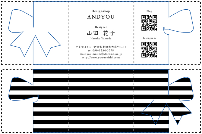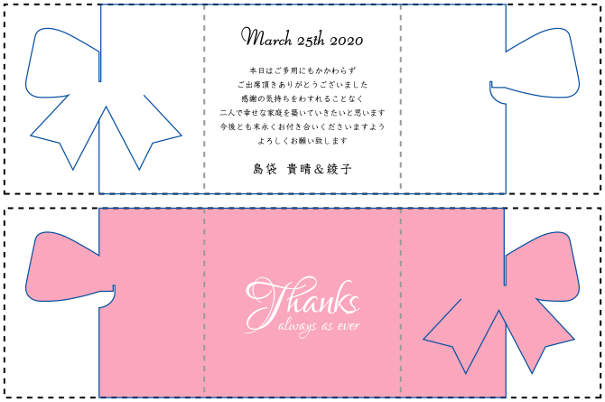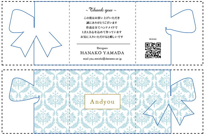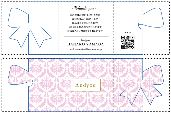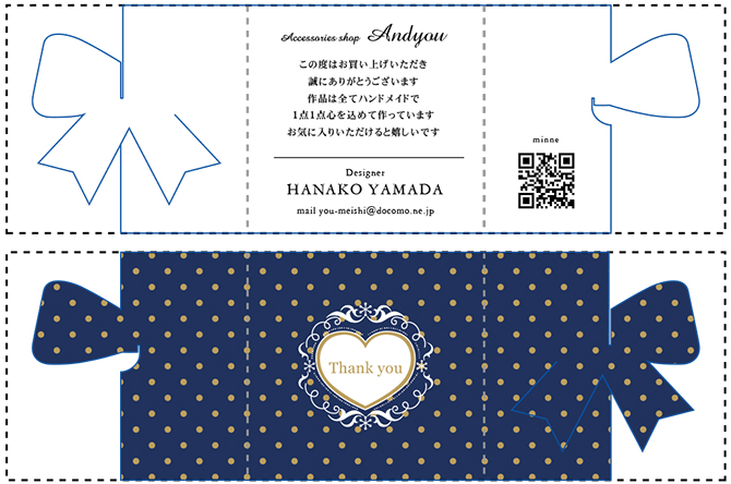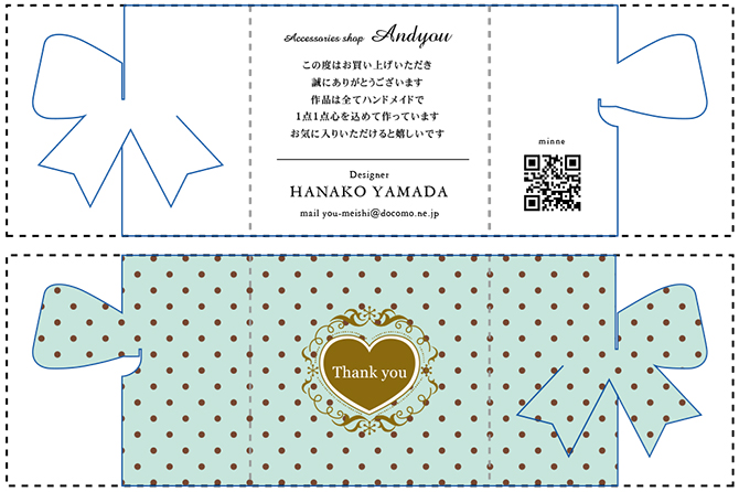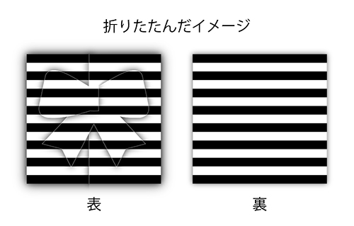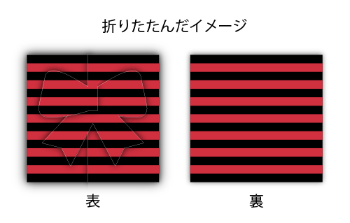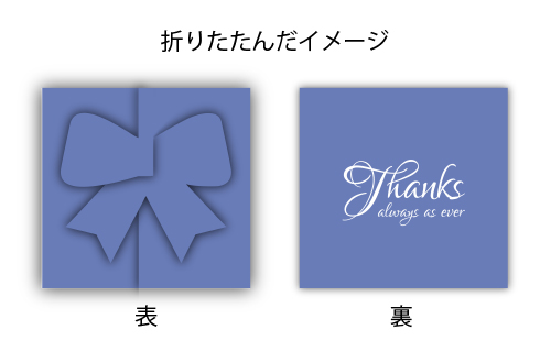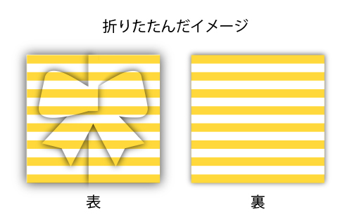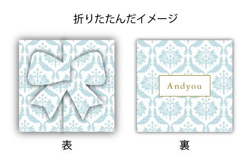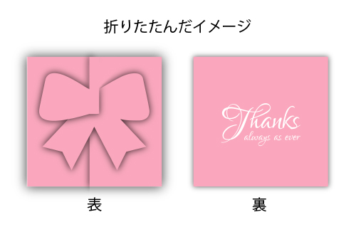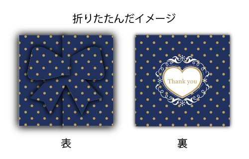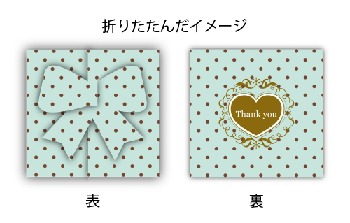 三つに折りたたむことで、正面にリボンやハートなどのワンポイントが現れます♪