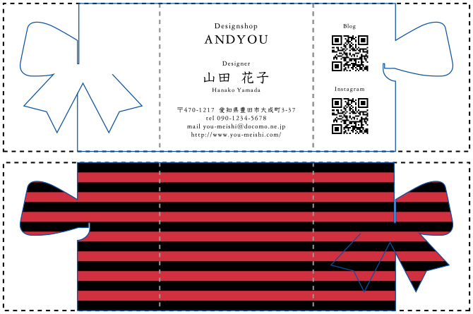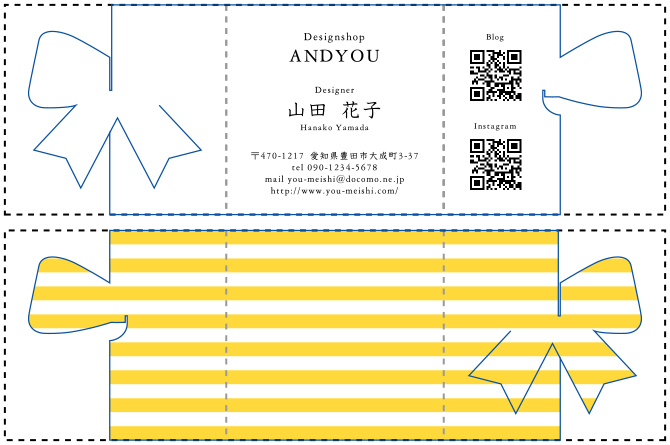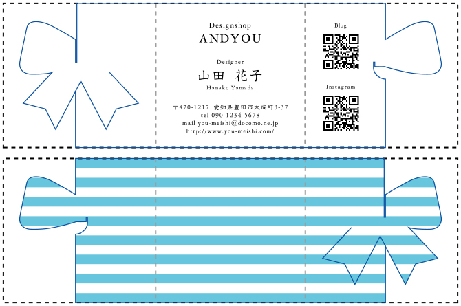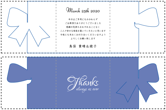 ※青色の線が切り抜き線、点線部分が折りスジ部分となります。