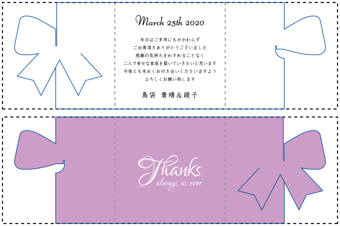 ※色がついているデザインの場合、折り目の部分から色が剥げ、白い色(用紙の色)が出てきてしまう恐れがあります。