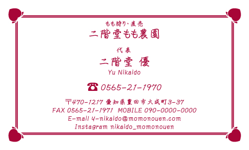 桃農家・農場・農園・ファーム・農業 名刺デザイン 桃農家・農場・農園・ファーム・農業の職業別にデザインした名刺!おしゃれで可愛いデザインから、シンプルにかっこいいデザインまで盛り沢山!あなたのイメージに合ったデザインの名刺をお選び下さい。 × 閉じる « 前へ123次の32件 » 33件 ~ 64件 (全 78件) momo-farm-CY-008色違い有 momo-farm-CY-007色違い有 momo-farm-CY-006色違い有 momo-farm-CY-005色違い有 momo-farm-CY-004 momo-farm-CY-003 momo-farm-CY-002 momo-farm-CY-001 momo-farm-CA-029 momo-farm-CA-028 momo-farm-CA-027 momo-farm-CA-026 momo-farm-CA-025 momo-farm-CA-024 momo-farm-CA-023 momo-farm-CA-022色違い有 momo-farm-CA-021色違い有 momo-farm-CA-020色違い有 momo-farm-CA-019色違い有 momo-farm-CA-018 momo-farm-CA-017 momo-farm-CA-016 momo-farm-CA-015 momo-farm-CA-014 momo-farm-CA-013 momo-farm-CA-012 momo-farm-CA-011 momo-farm-CA-010 momo-farm-CA-009 momo-farm-CA-008色違い有 momo-farm-CA-007色違い有 momo-farm-CA-006色違い有 « 前へ123次の32件 » 33件 ~ 64件 (全 78件) 新登場カテゴリはこちら! 男性に人気のカテゴリはこちら! 女性に人気のカテゴリはこちら! 人気の型抜きシリーズ 他の名刺屋さんでは買えない! 名刺 + α ショップ様にオススメ 当店自慢のレーザー加工 名刺以外にもこんな商品 オプション