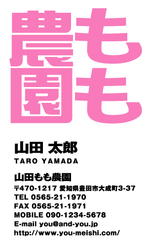 桃農家・農場・農園・ファーム・農業 名刺デザイン 桃農家・農場・農園・ファーム・農業の職業別にデザインした名刺!おしゃれで可愛いデザインから、シンプルにかっこいいデザインまで盛り沢山!あなたのイメージに合ったデザインの名刺をお選び下さい。 × 閉じる 先頭へ « 前へ123 65件 ~ 78件 (全 78件) momo-farm-CA-005色違い有 momo-farm-CA-004 momo-farm-CA-003 momo-farm-CA-002 momo-farm-CA-001 momo-farm-SM-009 momo-farm-SM-008 momo-farm-SM-007 momo-farm-SM-006 momo-farm-SM-005 momo-farm-SM-004 momo-farm-SM-003 momo-farm-SM-002 momo-farm-SM-001 先頭へ « 前へ123 65件 ~ 78件 (全 78件) 新登場カテゴリはこちら! 男性に人気のカテゴリはこちら! 女性に人気のカテゴリはこちら! 人気の型抜きシリーズ 他の名刺屋さんでは買えない! 名刺 + α ショップ様にオススメ 当店自慢のレーザー加工 名刺以外にもこんな商品 オプション 検 索 総デザイン数: 点