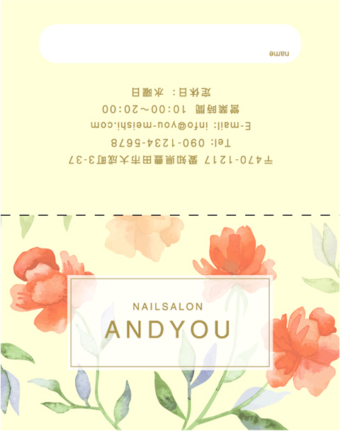 20枚からご注文できる、2つ折りサイズのショップカード・ポイントカードです。