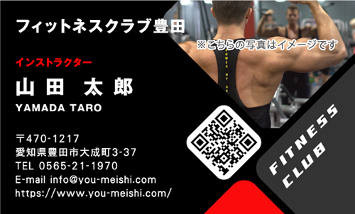 fitness-NI-011 フィットネス ジム スタジオ インストラクター 名刺デザイン ブラックベースでかっこいい印象の名刺です。お気に入りの写真を入れて作成するデザインです。 |