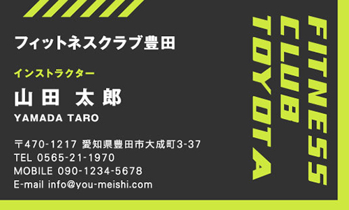 fitness-NI-020 フィットネス ジム スタジオ インストラクター 名刺デザイン スタイリッシュでかっこいいデザインです。ビジネスシーンにご利用いただけるビジネス用のデザイン名刺です。 |