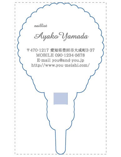 通常の名刺サイズ91mm×55mmを点線で表しておりますので、切りぬき後のサイズの目安としてご覧ください。