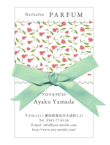 ”名刺に本物のリボンを付けたい!!”から始まったこちらの名刺…。