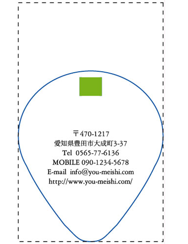 通常の名刺サイズ91mm×55mmを点線で表しておりますので、切りぬき後のサイズの目安としてご覧ください。