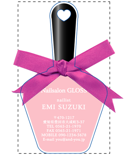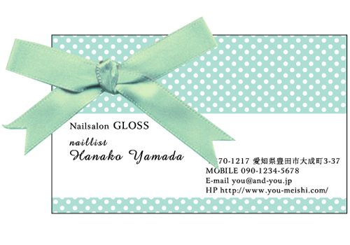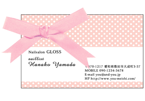 当店で名刺にリボン通し用の穴を2か所あけます。リボンを通して、蝶ちょ結びをすれば完成です!