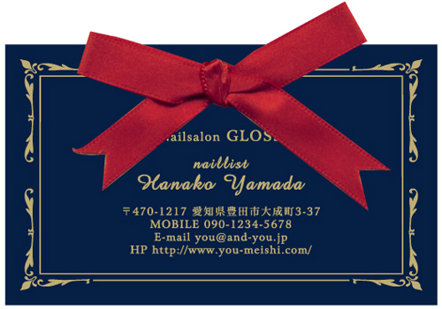 ※リボンと名刺は別にして出荷いたしますので、リボンを穴に通し結ぶ作業はお客様の方でお願いいたします。