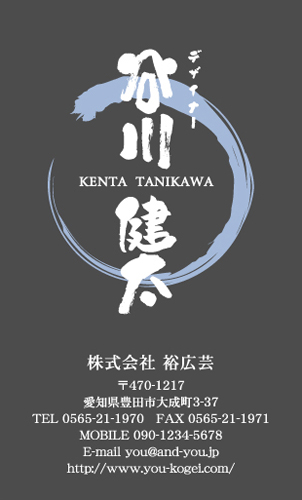 13種類の筆文字書体を使用して”かっこよく””豪快に””時には上品に”筆文字のもつ躍動感を名刺のサイズ内で表現しております。