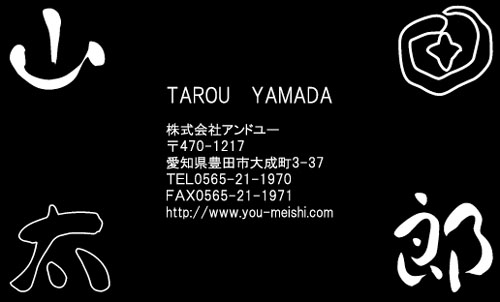 13種類の筆文字書体を使用して”かっこよく””豪快に””時には上品に”筆文字のもつ躍動感を名刺のサイズ内で表現しております。