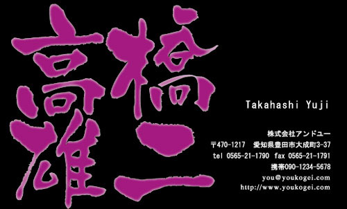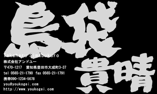 13種類の筆文字書体を使用して”かっこよく””豪快に””時には上品に”筆文字のもつ躍動感を名刺のサイズ内で表現しております。