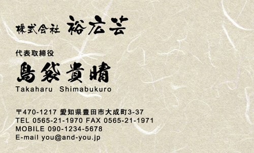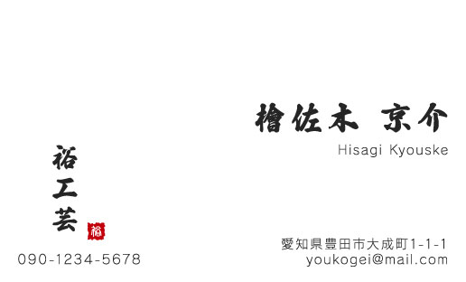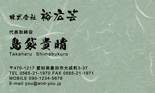 13種類の筆文字書体を使用して”かっこよく””豪快に””時には上品に”筆文字のもつ躍動感を名刺のサイズ内で表現しております。