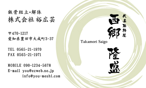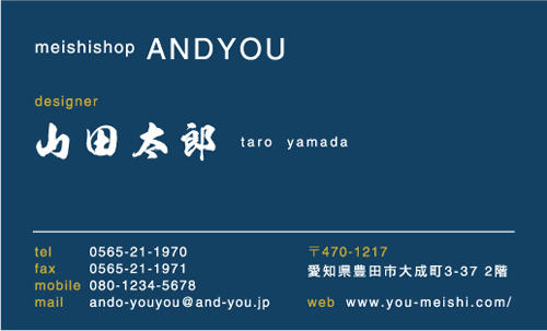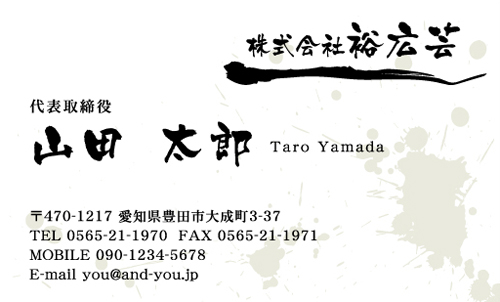 13種類の筆文字書体を使用して”かっこよく””豪快に””時には上品に”筆文字のもつ躍動感を名刺のサイズ内で表現しております。