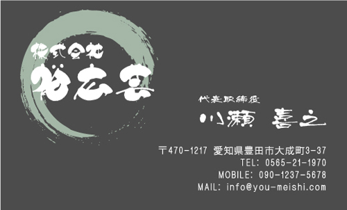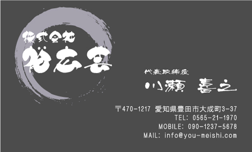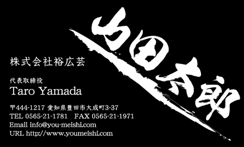 13種類の筆文字書体を使用して”かっこよく””豪快に””時には上品に”筆文字のもつ躍動感を名刺のサイズ内で表現しております。