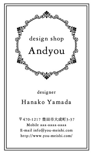かわいい名刺 AK-CU-021 カテゴリ > かわいいデザイン名刺 表 ※オンマウスで拡大表示いたします。 サイズ 91mm × 55mm このデザインで注文する このデザインでFAX注文 裏面デザインについて このデザインをお気に入りに追加 この商品に対するお問い合わせ 色違いデザイン AK-CU-019AK-CU-020 簡単料金計算 用紙を選択 ハイトーン (最もスタンダードな白い用紙) マイルド (白味を少し抑えたオフホワイトの用紙) サニー (クリーム色の用紙) グレイ (緑がかった明るい灰色の用紙) 光沢紙 ※両面印刷不可 ※ラインストーン不可半透明(トレーシングペーパー) ※両面印刷不可 ※ラインストーン不可半透明(NTパイル) ※両面印刷不可 ※ラインストーン不可厚紙:オフホワイト 枚数を選択 203050100150200300400500 金額をチェック 送料はこちら レビューコメント 1 件のレビュー・コメントがあります。 美穂 様(閲覧者) 2018年05月27日 「クールビューティー」という言葉がピッタリの名刺ですね。仕事もスポ... 続きを読む 美穂 様(閲覧者) 2018年05月27日 「クールビューティー」という言葉がピッタリの名刺ですね。仕事もスポーツも勉強も何でもできる、万能な女性を想像しました。「なんて素晴らしい方だろう」と周囲から褒め讃えられること間違いなしですね。ローマ字で名前が書かれているのが、とってもお洒落です。派手な色が使われていないのが、みずみずしくシンプルな印象があってとても素敵だなあと思いました。 閉じる レビューをお書きください このデザインのレビュー(ご感想)をぜひご記入ください レビュー入力欄 レビューは不特定多数の方がご覧になりますので、 個人情報などを含まれないようにご注意ください。 投稿していただいた内容について、弊社で不適切と判断した場合には、 お断りなく非掲載とさせていただく場合がございます。 レビュー記入者の種別 閲覧者 購入者 レビュー記入者の名前(ニックネーム) 下の数字を入力: 関連デザイン penki-ay001 penki-ay002 penki-ay003 penki-ay004 penki-ay005 penki-ay006 yhce038 yhce041 ail001 aiqr007 aiqr008 aiqr009