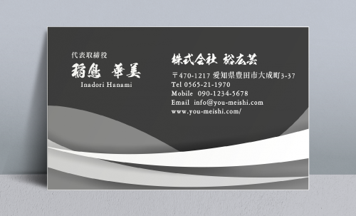筆文字名刺 AK-SH-001 カテゴリ > 筆文字・毛筆・和 名刺 表 ※オンマウスで拡大表示いたします。 サイズ 91mm × 55mm このデザインで注文する このデザインでFAX注文 裏面デザインについて このデザインをお気に入りに追加 この商品に対するお問い合わせ 色違いデザイン AK-SH-002 簡単料金計算 用紙を選択 ハイトーン (最もスタンダードな白い用紙) マイルド (白味を少し抑えたオフホワイトの用紙) サニー (クリーム色の用紙) グレイ (緑がかった明るい灰色の用紙) 光沢紙 ※両面印刷不可 ※ラインストーン不可半透明(トレーシングペーパー) ※両面印刷不可 ※ラインストーン不可半透明(NTパイル) ※両面印刷不可 ※ラインストーン不可 枚数を選択 203050100150200300400500 金額をチェック 送料はこちら レビューコメント 1 件のレビュー・コメントがあります。 河の髪 様(閲覧者) 2016年03月18日 清らかな波が上下に流れるようなデザインにため息がでました。水面の澄... 続きを読む 河の髪 様(閲覧者) 2016年03月18日 清らかな波が上下に流れるようなデザインにため息がでました。水面の澄んだ美しさがこの名刺からもうかがい知ることができますね。筆文字もこの名刺に雰囲気にマッチしていると思います。魚を扱う商売に、とてもいい名刺だと思いました。夏の汗ばむ日にこの名刺が清涼感を与えてくれると思いました。滑らかな水っぽいラインなので女性にもいいかもしれませんね。 閉じる レビューをお書きください このデザインのレビュー(ご感想)をぜひご記入ください レビュー入力欄 レビューは不特定多数の方がご覧になりますので、 個人情報などを含まれないようにご注意ください。 投稿していただいた内容について、弊社で不適切と判断した場合には、 お断りなく非掲載とさせていただく場合がございます。 レビュー記入者の種別 閲覧者 購入者 レビュー記入者の名前(ニックネーム) 下の数字を入力: 関連デザイン penki-ay001 penki-ay002 penki-ay003 penki-ay004 penki-ay005 penki-ay006 aico016 aico017 akco019 akco020 akco021 akco022