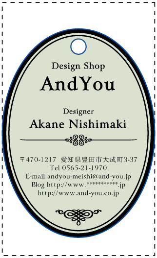 オーバル型のタグ名刺ということで、まるで高級ブランドのタグみたい。