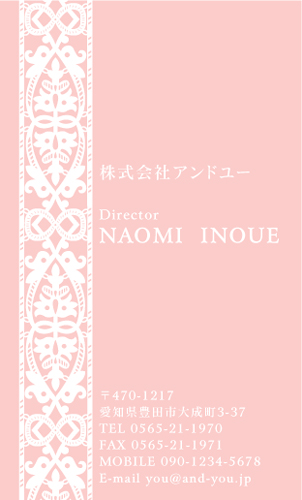 かわいい名刺 AY-CU-022 カテゴリ > かわいいデザイン名刺 表 ※オンマウスで拡大表示いたします。 サイズ 91mm × 55mm このデザインで注文する このデザインでFAX注文 裏面デザインについて このデザインをお気に入りに追加 この商品に対するお問い合わせ 色違いデザイン AY-CU-023 簡単料金計算 用紙を選択 ハイトーン (最もスタンダードな白い用紙) マイルド (白味を少し抑えたオフホワイトの用紙) サニー (クリーム色の用紙) グレイ (緑がかった明るい灰色の用紙) 光沢紙 ※両面印刷不可 ※ラインストーン不可半透明(トレーシングペーパー) ※両面印刷不可 ※ラインストーン不可半透明(NTパイル) ※両面印刷不可 ※ラインストーン不可 枚数を選択 203050100150200300400500 金額をチェック 送料はこちら レビューコメント 1 件のレビュー・コメントがあります。 るい 様(閲覧者) 2015年07月15日 かわいいピンクとグレーのチェック柄の上に、またかわいいレースリボン... 続きを読む るい 様(閲覧者) 2015年07月15日 かわいいピンクとグレーのチェック柄の上に、またかわいいレースリボンを敷いたデザインが本当に可愛いですね。小さめの文字も控えめな可愛さがあります。インパクトのあるこの名刺は仕事めいしとしてもお客様に好感を持たれることでしょう。好きなピンクで私も個人的に作ってみたいデザインです。女性の可愛さが表現されていて良いなあと思います。 閉じる レビューをお書きください このデザインのレビュー(ご感想)をぜひご記入ください レビュー入力欄 レビューは不特定多数の方がご覧になりますので、 個人情報などを含まれないようにご注意ください。 投稿していただいた内容について、弊社で不適切と判断した場合には、 お断りなく非掲載とさせていただく場合がございます。 レビュー記入者の種別 閲覧者 購入者 レビュー記入者の名前(ニックネーム) 下の数字を入力: 関連デザイン penki-ay001 penki-ay002 penki-ay003 penki-ay004 penki-ay005 penki-ay006 aykd004 ayl029 ayl037 nice038 nice040 nice042
