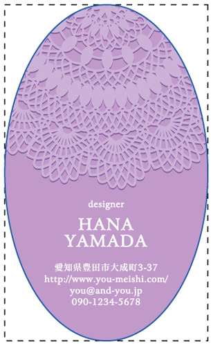 切り抜き名刺 AY-KIRI-026 カテゴリ > 切り抜き名刺 表 ※オンマウスで拡大表示いたします。 切抜きサイズ 縦 91 mm×横 55 mm このデザインで注文する このデザインでFAX注文 裏面デザインについて このデザインをお気に入りに追加 この商品に対するお問い合わせ 色違いデザイン AY-KIRI-025AY-KIRI-027AY-KIRI-028 簡単料金計算 用紙を選択 ハイトーン (最もスタンダードな白い用紙) マイルド (白味を少し抑えたオフホワイトの用紙) サニー (クリーム色の用紙) 光沢紙 ※両面印刷不可 ※ラインストーン不可半透明(トレーシングペーパー) ※両面印刷不可 ※ラインストーン不可半透明(NTパイル) ※両面印刷不可 ※ラインストーン不可 枚数を選択 203050100150200300400500 金額をチェック 送料はこちら レビューコメント 1 件のレビュー・コメントがあります。 夜にしか咲かない満月 様(閲覧者) 2014年09月27日 鮮やかなブルーが爽やかな感じがしますね!それに可愛らしい感じがイイ... 続きを読む 夜にしか咲かない満月 様(閲覧者) 2014年09月27日 鮮やかなブルーが爽やかな感じがしますね!それに可愛らしい感じがイイです。同系色のレースが細かくって上品さがあり、名刺の形が楕円形になっているのが素敵ですね。文字は白でスッキリした感じで名前のローマ字がオシャレさ倍増している感じがします。少し硬めの文体なので甘さ控えにも感じますし、クールな感じもするので、変わった名刺が好きな方にはツボですね★ 閉じる レビューをお書きください このデザインのレビュー(ご感想)をぜひご記入ください レビュー入力欄 レビューは不特定多数の方がご覧になりますので、 個人情報などを含まれないようにご注意ください。 投稿していただいた内容について、弊社で不適切と判断した場合には、 お断りなく非掲載とさせていただく場合がございます。 レビュー記入者の種別 閲覧者 購入者 レビュー記入者の名前(ニックネーム) 下の数字を入力:
