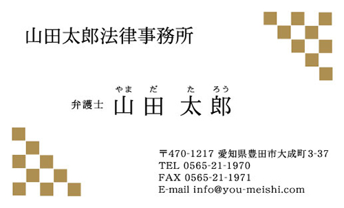 弁護士・弁護士事務所 bengosi-NI-078 カテゴリ > 弁護士・弁護士事務所 名刺デザイン 四角を用いてシンプルにデザインした弁護士さんの名刺 表 イメージ ※オンマウスで拡大表示いたします。 サイズ 91mm × 55mm このデザインで注文する このデザインでFAX注文 裏面デザインについて このデザインをお気に入りに追加 この商品に対するお問い合わせ 色違いデザイン bengosi-NI-080bengosi-NI-079bengosi-NI-077 簡単料金計算 用紙を選択 ハイトーン (最もスタンダードな白い用紙) マイルド (白味を少し抑えたオフホワイトの用紙) サニー (クリーム色の用紙) 光沢紙 ※両面印刷不可 ※ラインストーン不可和紙(両面新大礼紙) (両面にレーヨン繊維が漉き込まれています) 半透明(トレーシングペーパー) ※両面印刷不可 ※ラインストーン不可半透明(NTパイル) ※両面印刷不可 ※ラインストーン不可厚紙:オフホワイト 枚数を選択 203050100150200300400500 金額をチェック 送料はこちら レビューコメント レビュー・コメントはまだありません。 閉じる レビューをお書きください このデザインのレビュー(ご感想)をぜひご記入ください レビュー入力欄 レビューは不特定多数の方がご覧になりますので、 個人情報などを含まれないようにご注意ください。 投稿していただいた内容について、弊社で不適切と判断した場合には、 お断りなく非掲載とさせていただく場合がございます。 レビュー記入者の種別 閲覧者 購入者 レビュー記入者の名前(ニックネーム) 下の数字を入力: 関連デザイン aico006 aico007 aiqr015 aiqr016 aiqr017 aish001 aish002 aisq035 aisq036 aisq037 aisq038 akce055