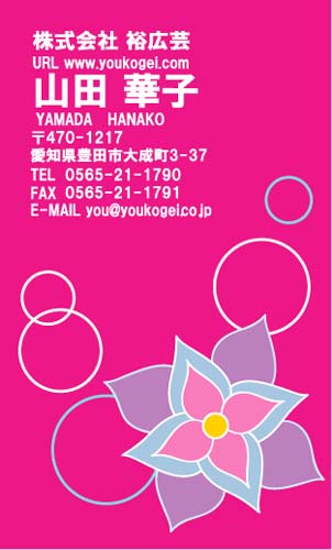 かわいい名刺 KN-CU-036 カテゴリ > かわいいデザイン名刺 表 ※オンマウスで拡大表示いたします。 サイズ 91mm × 55mm このデザインで注文する このデザインでFAX注文 裏面デザインについて このデザインをお気に入りに追加 この商品に対するお問い合わせ 簡単料金計算 用紙を選択 ハイトーン (最もスタンダードな白い用紙) マイルド (白味を少し抑えたオフホワイトの用紙) サニー (クリーム色の用紙) 半透明(トレーシングペーパー) ※両面印刷不可 ※ラインストーン不可半透明(NTパイル) ※両面印刷不可 ※ラインストーン不可光沢紙 ※両面印刷不可 ※ラインストーン不可 枚数を選択 203050100150200300400500 金額をチェック 送料はこちら レビューコメント 3 件のレビュー・コメントがあります。 ピンキー 様(閲覧者) 2025年09月23日 花のイラストが可愛らしくていいですね。ポップな印象もありながら、温... 続きを読む ピンキー 様(閲覧者) 2025年09月23日 花のイラストが可愛らしくていいですね。ポップな印象もありながら、温かみのあるピンク色に惹かれました。魅力溢れるデザインがオシャレで素敵な名刺だな、と思いました。 百代 様(閲覧者) 2016年02月14日 とてもシンプルな花の名刺ですが、ピンクの台紙にピンクのお花と、ラブリー過ぎます。ポップなので気軽な感じの席で使えば、話も弾みそうですね。全体的に私の好みな色の配色で、みていると本当に欲しくなってしまいますね。可愛いさも必要最小限なのが、くどくなくてイイ感じだと思いました。シンプルポップなデザインは、等身大でいいですね。 パッチ 様(閲覧者) 2014年08月23日 沢山の種類のピンク色を使っていてすごく可愛らしい名刺ですね✩花がオシャレですね。この名刺は比較的若い女性に人気がありそうですね。この名刺はピンクをベースに使っているけれど、色を青や、紫のような色にすると男性の方も使えそうですね!名前をローマ字で書かれてあるのがオシャレで良いですね!左にある黄色い●がアクセントになっているみたいでイイですね。 閉じる レビューをお書きください このデザインのレビュー(ご感想)をぜひご記入ください レビュー入力欄 レビューは不特定多数の方がご覧になりますので、 個人情報などを含まれないようにご注意ください。 投稿していただいた内容について、弊社で不適切と判断した場合には、 お断りなく非掲載とさせていただく場合がございます。 レビュー記入者の種別 閲覧者 購入者 レビュー記入者の名前(ニックネーム) 下の数字を入力: 関連デザイン aih004 aiha001 aiha007 akha003 aycl030 ayha022 ayha031 ayha037 aykd007 aykd009 ayl031 maha004