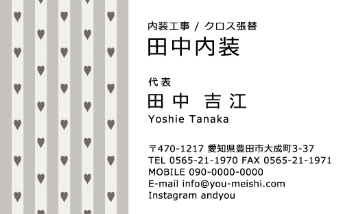 クロス屋・内装業 名刺デザイン kurosu-CA-010 カテゴリ > クロス屋・内装業 名刺デザイン ハート柄の壁をイメージしたクロス屋・内装業さん向けの名刺デザインです。 表 イメージ ※オンマウスで拡大表示いたします。 サイズ 91mm × 55mm このデザインで注文する このデザインでFAX注文 裏面デザインについて このデザインをお気に入りに追加 この商品に対するお問い合わせ 色違いデザイン kurosu-CA-011 簡単料金計算 用紙を選択 ハイトーン (最もスタンダードな白い用紙) マイルド (白味を少し抑えたオフホワイトの用紙) サニー (クリーム色の用紙) グレイ (緑がかった明るい灰色の用紙) 光沢紙 ※両面印刷不可 ※ラインストーン不可半透明(トレーシングペーパー) ※両面印刷不可 ※ラインストーン不可半透明(NTパイル) ※両面印刷不可 ※ラインストーン不可 枚数を選択 203050100150200300400500 金額をチェック 送料はこちら レビューコメント レビュー・コメントはまだありません。 閉じる レビューをお書きください このデザインのレビュー(ご感想)をぜひご記入ください レビュー入力欄 レビューは不特定多数の方がご覧になりますので、 個人情報などを含まれないようにご注意ください。 投稿していただいた内容について、弊社で不適切と判断した場合には、 お断りなく非掲載とさせていただく場合がございます。 レビュー記入者の種別 閲覧者 購入者 レビュー記入者の名前(ニックネーム) 下の数字を入力: