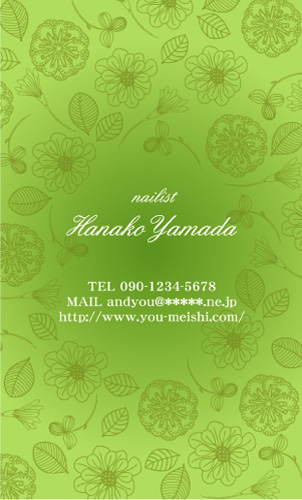 オレンジからグリーンにかけてのきれいなグラデーションが印象的な名刺ですね。