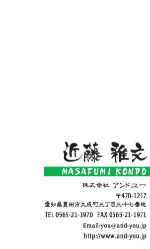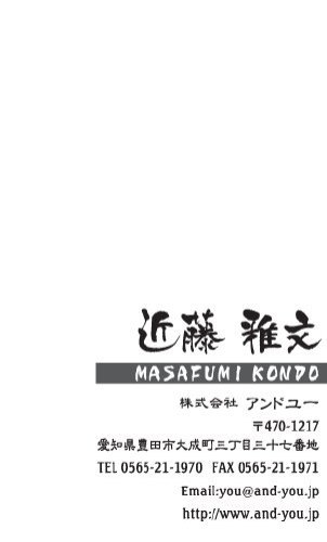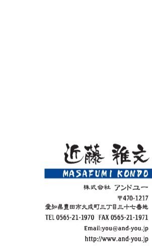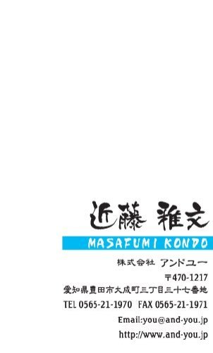 筆文字名刺 MA-SH-007 カテゴリ > 筆文字・毛筆・和 名刺 表 ※オンマウスで拡大表示いたします。 サイズ 91mm × 55mm このデザインで注文する このデザインでFAX注文 裏面デザインについて このデザインをお気に入りに追加 この商品に対するお問い合わせ 色違いデザイン MA-SH-008MA-SH-009MA-SH-010MA-SH-011 MA-SH-012 簡単料金計算 用紙を選択 ハイトーン (最もスタンダードな白い用紙) マイルド (白味を少し抑えたオフホワイトの用紙) サニー (クリーム色の用紙) グレイ (緑がかった明るい灰色の用紙) 光沢紙 ※両面印刷不可 ※ラインストーン不可和紙(両面新大礼紙) (両面にレーヨン繊維が漉き込まれています) 半透明(トレーシングペーパー) ※両面印刷不可 ※ラインストーン不可半透明(NTパイル) ※両面印刷不可 ※ラインストーン不可厚紙:オフホワイト 枚数を選択 203050100150200300400500 金額をチェック 送料はこちら レビューコメント 2 件のレビュー・コメントがあります。 okuda 様(閲覧者) 2013年07月21日 こういうおしゃれ系の筆文字名刺もあるのですね。「筆文字=おじさん」... 続きを読む okuda 様(閲覧者) 2013年07月21日 こういうおしゃれ系の筆文字名刺もあるのですね。「筆文字=おじさん」というこれまでの認識を改めます!ホワイトスペースを贅沢にとったシンプルなデザインの中で、肉質感のある筆文字が本当に効果的。さらっと書いたような文字にも味がありますね。フリガナの入れ方もオシャレで、赤がポイントカラーとして効いています。気に入りました! トリコ 様(閲覧者) 2013年04月20日 字体も個性的でカッコいいです。毛筆だと渋さがUPします。名前が毛筆ってだけで見た目にもカッコいい感じになりますね。必要な情報もすべてシンプルに表示され見やすいです。結構、難しい漢字の名前の方もいるんので読み方が表示されているのは嬉しいです。背景がシンプルな白で文字は黒、読み方が赤の白抜きと言う事で見やすいのが嬉しいです。 閉じる レビューをお書きください このデザインのレビュー(ご感想)をぜひご記入ください レビュー入力欄 レビューは不特定多数の方がご覧になりますので、 個人情報などを含まれないようにご注意ください。 投稿していただいた内容について、弊社で不適切と判断した場合には、 お断りなく非掲載とさせていただく場合がございます。 レビュー記入者の種別 閲覧者 購入者 レビュー記入者の名前(ニックネーム) 下の数字を入力: 関連デザイン penki-ay001 penki-ay002 penki-ay003 penki-ay004 penki-ay005 penki-ay006 niqr001 niqr002 niqr040 niqr041 niqr042 nis017