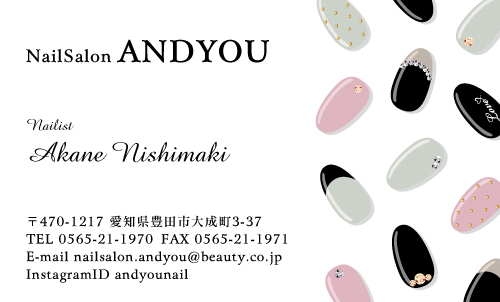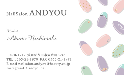 職業別名刺:ネイリスト nailist-AK-015 カテゴリ > ネイルサロン・ネイリスト 名刺デザイン 表 ※オンマウスで拡大表示いたします。 サイズ 91mm × 55mm このデザインで注文する このデザインでFAX注文 裏面デザインについて このデザインをお気に入りに追加 この商品に対するお問い合わせ 色違いデザイン nailist-AK-013nailist-AK-014nailist-AK-016nailist-AK-017 nailist-AK-018 簡単料金計算 用紙を選択 ハイトーン (最もスタンダードな白い用紙) マイルド (白味を少し抑えたオフホワイトの用紙) サニー (クリーム色の用紙) 光沢紙 ※両面印刷不可 ※ラインストーン不可半透明(トレーシングペーパー) ※両面印刷不可 ※ラインストーン不可半透明(NTパイル) ※両面印刷不可 ※ラインストーン不可厚紙:オフホワイト 枚数を選択 203050100150200300400500 金額をチェック 送料はこちら レビューコメント レビュー・コメントはまだありません。 閉じる レビューをお書きください このデザインのレビュー(ご感想)をぜひご記入ください レビュー入力欄 レビューは不特定多数の方がご覧になりますので、 個人情報などを含まれないようにご注意ください。 投稿していただいた内容について、弊社で不適切と判断した場合には、 お断りなく非掲載とさせていただく場合がございます。 レビュー記入者の種別 閲覧者 購入者 レビュー記入者の名前(ニックネーム) 下の数字を入力: 関連デザイン penki-ay001 penki-ay002 penki-ay003 penki-ay004 penki-ay005 penki-ay006 NI-HA-110 NI-SH-100 aias001 aias005 aias006 aias007