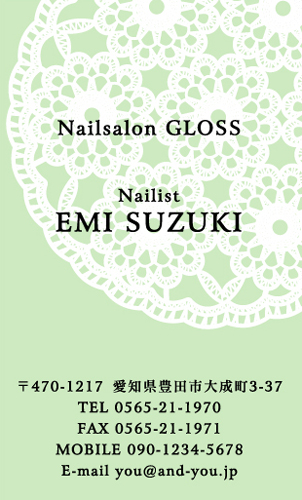 セレブデザイン名刺 NI-CE-082 カテゴリ > 上品でセンスのいいセレブデザイン名刺 表 ※オンマウスで拡大表示いたします。 サイズ 91mm × 55mm このデザインで注文する このデザインでFAX注文 裏面デザインについて このデザインをお気に入りに追加 この商品に対するお問い合わせ 色違いデザイン NI-CE-084NI-CE-086 簡単料金計算 用紙を選択 光沢紙 ※両面印刷不可 ※ラインストーン不可半透明(トレーシングペーパー) ※両面印刷不可 ※ラインストーン不可半透明(NTパイル) ※両面印刷不可 ※ラインストーン不可 枚数を選択 203050100150200300400500 金額をチェック 送料はこちら レビューコメント 3 件のレビュー・コメントがあります。 和成 様(閲覧者) 2018年07月08日 高価な着物を身にまとった時のような、高貴な気持ちに包まれますね。格... 続きを読む 和成 様(閲覧者) 2018年07月08日 高価な着物を身にまとった時のような、高貴な気持ちに包まれますね。格式高い印象があり、名刺を渡した多くの方から尊敬の念を抱かれそうです。「謎を秘めている」というような印象もあり、見た瞬間この名刺のことを気にかけずにはいられません。文字が明朝体で書かれているのも、聡明な印象があって良いですね。ローマ字で大きく名前が書かれているのも印象的です。 smile 様(閲覧者) 2013年07月28日 好きな色の紫が全体色として使われていたのでつい目がいきました。そこに白レースの模様が、これまた4分の3ぐらいの絶妙な配置で置かれていたので素敵なデザインだなと思いました。レースの模様も非常に丁寧に作りこまれていて目を惹きました。自分の好きな色を名刺に使うというのも、自分をアピールするのに大切な要素だなと思いました。 ゆうじ 様(閲覧者) 2013年06月11日 服装使いでも、小物でも紫と言う色は合わせにくいし、使いにくい色なのですが、この名刺の紫はキツさと言った物や、押し付けがましさと言った感じがまったく無く、穏やかな雰囲気が出ていて、そこへレース編み物のような模様が合わされ事で気品のような物さえ感じられる気がします。レース模様に似た白で作った幾何学模様とでもとでも言うのでしょうか、これが上品な感じが出ていて印象を上げていますね。 閉じる レビューをお書きください このデザインのレビュー(ご感想)をぜひご記入ください レビュー入力欄 レビューは不特定多数の方がご覧になりますので、 個人情報などを含まれないようにご注意ください。 投稿していただいた内容について、弊社で不適切と判断した場合には、 お断りなく非掲載とさせていただく場合がございます。 レビュー記入者の種別 閲覧者 購入者 レビュー記入者の名前(ニックネーム) 下の数字を入力: 関連デザイン penki-ay001 penki-ay002 penki-ay003 penki-ay004 penki-ay005 penki-ay006 nigi007 nigi010 nil100 nil101 nil102 aiqr008
