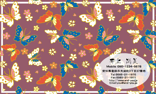 名刺の中に描かれている蝶のイラストから、「エレガントさ・おしとやかさ」を感じました。