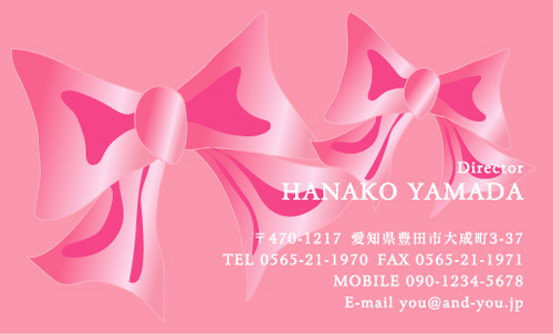名刺の中にリボンのイラストが2つ描かれている。