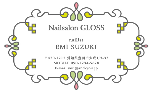 かわいい名刺 NI-CU-157 カテゴリ > かわいいデザイン名刺 表 ※オンマウスで拡大表示いたします。 サイズ 91mm × 55mm このデザインで注文する このデザインでFAX注文 裏面デザインについて このデザインをお気に入りに追加 この商品に対するお問い合わせ 色違いデザイン NI-CU-156NI-CU-158 簡単料金計算 用紙を選択 ハイトーン (最もスタンダードな白い用紙) マイルド (白味を少し抑えたオフホワイトの用紙) サニー (クリーム色の用紙) グレイ (緑がかった明るい灰色の用紙) 光沢紙 ※両面印刷不可 ※ラインストーン不可半透明(トレーシングペーパー) ※両面印刷不可 ※ラインストーン不可半透明(NTパイル) ※両面印刷不可 ※ラインストーン不可 枚数を選択 203050100150200300400500 金額をチェック 送料はこちら レビューコメント レビュー・コメントはまだありません。 閉じる レビューをお書きください このデザインのレビュー(ご感想)をぜひご記入ください レビュー入力欄 レビューは不特定多数の方がご覧になりますので、 個人情報などを含まれないようにご注意ください。 投稿していただいた内容について、弊社で不適切と判断した場合には、 お断りなく非掲載とさせていただく場合がございます。 レビュー記入者の種別 閲覧者 購入者 レビュー記入者の名前(ニックネーム) 下の数字を入力: 関連デザイン penki-ay001 penki-ay002 penki-ay003 penki-ay004 penki-ay005 penki-ay006 ail003 akce003 akce006 akce014 nice203 nice272