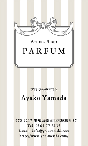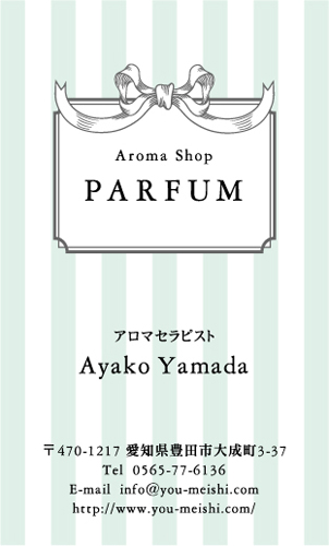 かわいい名刺 NI-CU-186 カテゴリ > かわいいデザイン名刺 表 ※オンマウスで拡大表示いたします。 サイズ 91mm × 55mm このデザインで注文する このデザインでFAX注文 裏面デザインについて このデザインをお気に入りに追加 この商品に対するお問い合わせ 色違いデザイン NI-CU-184NI-CU-185 簡単料金計算 用紙を選択 ハイトーン (最もスタンダードな白い用紙) マイルド (白味を少し抑えたオフホワイトの用紙) サニー (クリーム色の用紙) グレイ (緑がかった明るい灰色の用紙) 光沢紙 ※両面印刷不可 ※ラインストーン不可半透明(トレーシングペーパー) ※両面印刷不可 ※ラインストーン不可半透明(NTパイル) ※両面印刷不可 ※ラインストーン不可厚紙:オフホワイト 枚数を選択 203050100150200300400500 金額をチェック 送料はこちら レビューコメント 1 件のレビュー・コメントがあります。 あゆ 様(閲覧者) 2018年07月27日 リボン教室をやっているので、名刺のどこかにリボンが入った名刺を探し... 続きを読む あゆ 様(閲覧者) 2018年07月27日 リボン教室をやっているので、名刺のどこかにリボンが入った名刺を探していました。このデザインのアンティーク調のリボンがとても可愛いですね。ピンクのストライプがデザインされていて、可愛さもある私好みのデザインです。名刺広芸さんのリボン付き名刺もとても気になりますが、とりあえずコチラのデザインを注文させていただきました。実物も想像通りで満足です。次は、リボン付き名刺を注文させていただきますね。 閉じる レビューをお書きください このデザインのレビュー(ご感想)をぜひご記入ください レビュー入力欄 レビューは不特定多数の方がご覧になりますので、 個人情報などを含まれないようにご注意ください。 投稿していただいた内容について、弊社で不適切と判断した場合には、 お断りなく非掲載とさせていただく場合がございます。 レビュー記入者の種別 閲覧者 購入者 レビュー記入者の名前(ニックネーム) 下の数字を入力: 関連デザイン penki-ay001 penki-ay002 penki-ay003 penki-ay004 penki-ay005 penki-ay006 akpc002 nigi021 nigi024 nisq093 nisq098 aikd010
