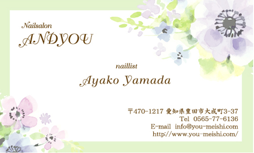 かわいい名刺 NI-CU-242 カテゴリ > かわいいデザイン名刺 表 ※オンマウスで拡大表示いたします。 サイズ 91mm × 55mm このデザインで注文する このデザインでFAX注文 裏面デザインについて このデザインをお気に入りに追加 この商品に対するお問い合わせ 色違いデザイン NI-CU-243NI-CU-244 簡単料金計算 用紙を選択 ハイトーン (最もスタンダードな白い用紙) マイルド (白味を少し抑えたオフホワイトの用紙) 光沢紙 ※両面印刷不可 ※ラインストーン不可半透明(トレーシングペーパー) ※両面印刷不可 ※ラインストーン不可半透明(NTパイル) ※両面印刷不可 ※ラインストーン不可厚紙:オフホワイト 枚数を選択 203050100150200300400500 金額をチェック 送料はこちら レビューコメント 2 件のレビュー・コメントがあります。 かおちゃん 様(閲覧者) 2020年06月14日 はじめまして!こちらのお店で名刺を作ってもらった友達の紹介で来まし... 続きを読む かおちゃん 様(閲覧者) 2020年06月14日 はじめまして!こちらのお店で名刺を作ってもらった友達の紹介で来ました!かわいいデザインがたくさんあったよ~って聞いていたんですが、ほんとにデザイン数が多くて驚きました!!(◎o◎)!まだ全部見れていないのですが、今のところこのお花のデザインが私の中でNo.1です!ふわっとしたナチュラルなカラーがステキですね♡もうちょっとデザイン見させて頂いてから注文をお願いしたいと思います♡ ムラ 様(購入者) 2016年11月14日 画面で見るよりも仕上がりは全体的に淡い印象でしたもう少しはっきり出てると良かったです 閉じる レビューをお書きください このデザインのレビュー(ご感想)をぜひご記入ください レビュー入力欄 レビューは不特定多数の方がご覧になりますので、 個人情報などを含まれないようにご注意ください。 投稿していただいた内容について、弊社で不適切と判断した場合には、 お断りなく非掲載とさせていただく場合がございます。 レビュー記入者の種別 閲覧者 購入者 レビュー記入者の名前(ニックネーム) 下の数字を入力: 関連デザイン penki-ay001 penki-ay002 penki-ay003 penki-ay004 penki-ay005 penki-ay006 knwa008 nico134 niha121 niha140 niha196 niha204