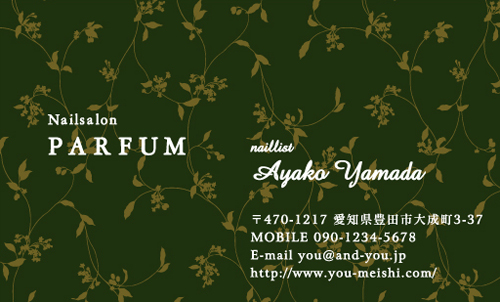 花名刺 NI-HA-095 カテゴリ > 花・花柄名刺 表 ※オンマウスで拡大表示いたします。 サイズ 91mm × 55mm このデザインで注文する このデザインでFAX注文 裏面デザインについて このデザインをお気に入りに追加 この商品に対するお問い合わせ 色違いデザイン NI-HA-092NI-HA-093NI-HA-094NI-HA-096 NI-HA-097 簡単料金計算 用紙を選択 ハイトーン (最もスタンダードな白い用紙) マイルド (白味を少し抑えたオフホワイトの用紙) サニー (クリーム色の用紙) グレイ (緑がかった明るい灰色の用紙) 光沢紙 ※両面印刷不可 ※ラインストーン不可厚紙:オフホワイト 枚数を選択 203050100150200300400500 金額をチェック 送料はこちら レビューコメント 2 件のレビュー・コメントがあります。 mint 様(購入者) 2016年08月19日 とても清潔感があり、上品な仕上がりに大満足です。本当にありがとうご... 続きを読む mint 様(購入者) 2016年08月19日 とても清潔感があり、上品な仕上がりに大満足です。本当にありがとうございます😊 ベス 様(閲覧者) 2016年02月24日 緑色の小花柄って、珍しいと思いました。緑色は葉っぱのイメージだったからかな。でも、考えを改めました。緑色のお花もとても可愛いし。爽やかで綺麗ですね。レースをあしらっているのも、素敵です。まるで若草物語の世界に迷い込んだみたい。可愛いものが好きな年配の方でも臆することなく、使用できそうな名刺だと思いました。見た感じが、とても上品ですよね。 閉じる レビューをお書きください このデザインのレビュー(ご感想)をぜひご記入ください レビュー入力欄 レビューは不特定多数の方がご覧になりますので、 個人情報などを含まれないようにご注意ください。 投稿していただいた内容について、弊社で不適切と判断した場合には、 お断りなく非掲載とさせていただく場合がございます。 レビュー記入者の種別 閲覧者 購入者 レビュー記入者の名前(ニックネーム) 下の数字を入力: 関連デザイン nigi034 penki-ay001 penki-ay002 penki-ay003 penki-ay004 penki-ay005 penki-ay006 niga063 nigi029 nigi030 nigi031 nigi032