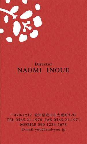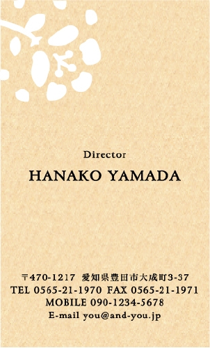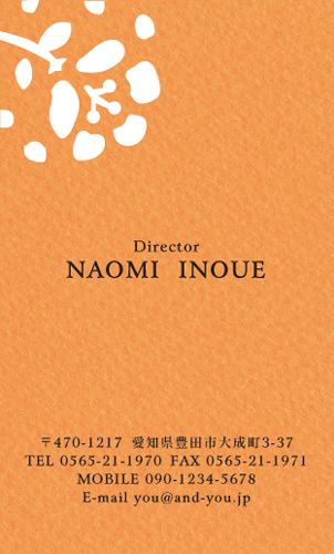 型抜き名刺 2色セット NI-HALF-099 カテゴリ > 女性に人気 型抜き名刺(2色セット) 表 ※オンマウスで拡大表示いたします。 サイズ 91mm × 55mm このデザインで注文する このデザインでFAX注文 裏面デザインについて このデザインをお気に入りに追加 この商品に対するお問い合わせ 色違いデザイン NI-HALF-046NI-HALF-101NI-HALF-047NI-HALF-048 NI-HALF-049NI-HALF-103NI-HALF-100NI-HALF-707 NI-HALF-786NI-HALF-787NI-HALF-788 簡単料金計算 用紙を選択 カラー用紙/空 (凸凹した柄の入った用紙) 枚数を選択 100枚(50枚×2色)200枚(100枚×2色)300枚(150枚×2色)400枚(200枚×2色)500枚(250枚×2色) 金額をチェック 送料はこちら レビューコメント 1 件のレビュー・コメントがあります。 ひとみ 様(閲覧者) 2013年10月12日 左上にある花は、切り絵のような少し単純化したフォルムで、型抜きには... 続きを読む ひとみ 様(閲覧者) 2013年10月12日 左上にある花は、切り絵のような少し単純化したフォルムで、型抜きにはぴったりですね。ブルーの紙を使っているので、全体としてはとても落ち着いた印象になっていて、知的な感じがします。また、ちょっとザラッとしたような紙の質感も型抜きと相性がいいように思います。プライベート名刺はもちろん、これなら、ビジネス名刺としても、使えるのではないでしょうか? 閉じる レビューをお書きください このデザインのレビュー(ご感想)をぜひご記入ください レビュー入力欄 レビューは不特定多数の方がご覧になりますので、 個人情報などを含まれないようにご注意ください。 投稿していただいた内容について、弊社で不適切と判断した場合には、 お断りなく非掲載とさせていただく場合がございます。 レビュー記入者の種別 閲覧者 購入者 レビュー記入者の名前(ニックネーム) 下の数字を入力:
