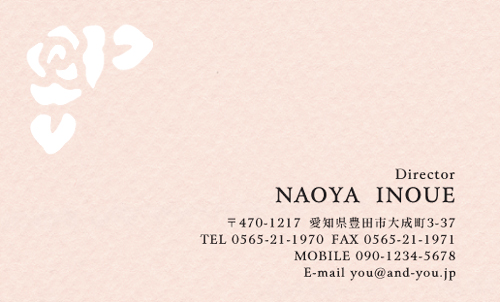 型抜き名刺 2色セット NI-HALF-129 カテゴリ > 女性に人気 型抜き名刺(2色セット) 表 ※オンマウスで拡大表示いたします。 サイズ 91mm × 55mm このデザインで注文する このデザインでFAX注文 裏面デザインについて このデザインをお気に入りに追加 この商品に対するお問い合わせ 色違いデザイン NI-HALF-036NI-HALF-131NI-HALF-037NI-HALF-038 NI-HALF-039NI-HALF-133NI-HALF-130NI-HALF-702 NI-HALF-735NI-HALF-736NI-HALF-737 簡単料金計算 用紙を選択 カラー用紙/空 (凸凹した柄の入った用紙) 枚数を選択 100枚(50枚×2色)200枚(100枚×2色)300枚(150枚×2色)400枚(200枚×2色)500枚(250枚×2色) 金額をチェック 送料はこちら レビューコメント レビュー・コメントはまだありません。 閉じる レビューをお書きください このデザインのレビュー(ご感想)をぜひご記入ください レビュー入力欄 レビューは不特定多数の方がご覧になりますので、 個人情報などを含まれないようにご注意ください。 投稿していただいた内容について、弊社で不適切と判断した場合には、 お断りなく非掲載とさせていただく場合がございます。 レビュー記入者の種別 閲覧者 購入者 レビュー記入者の名前(ニックネーム) 下の数字を入力: