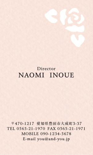 型抜き名刺 2色セット NI-HALF-216 カテゴリ > 女性に人気 型抜き名刺(2色セット) 表 ※オンマウスで拡大表示いたします。 サイズ 91mm × 55mm このデザインで注文する このデザインでFAX注文 裏面デザインについて このデザインをお気に入りに追加 この商品に対するお問い合わせ 色違いデザイン NI-HALF-199NI-HALF-218NI-HALF-200NI-HALF-201 NI-HALF-202NI-HALF-220NI-HALF-217NI-HALF-711 NI-HALF-774NI-HALF-775NI-HALF-776 簡単料金計算 用紙を選択 カラー用紙/空 (凸凹した柄の入った用紙) 枚数を選択 100枚(50枚×2色)200枚(100枚×2色)300枚(150枚×2色)400枚(200枚×2色)500枚(250枚×2色) 金額をチェック 送料はこちら レビューコメント レビュー・コメントはまだありません。 閉じる レビューをお書きください このデザインのレビュー(ご感想)をぜひご記入ください レビュー入力欄 レビューは不特定多数の方がご覧になりますので、 個人情報などを含まれないようにご注意ください。 投稿していただいた内容について、弊社で不適切と判断した場合には、 お断りなく非掲載とさせていただく場合がございます。 レビュー記入者の種別 閲覧者 購入者 レビュー記入者の名前(ニックネーム) 下の数字を入力: