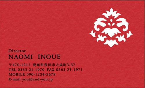 女性に人気 型抜き名刺(2色セット) NI-HALF-639 カテゴリ > 女性に人気 型抜き名刺(2色セット) 表 ※オンマウスで拡大表示いたします。 サイズ 91mm × 55mm このデザインで注文する このデザインでFAX注文 裏面デザインについて このデザインをお気に入りに追加 この商品に対するお問い合わせ 色違いデザイン NI-HALF-631NI-HALF-632NI-HALF-633NI-HALF-634 NI-HALF-635NI-HALF-636NI-HALF-704NI-HALF-638 NI-HALF-756NI-HALF-757NI-HALF-758 簡単料金計算 用紙を選択 カラー用紙/空 (凸凹した柄の入った用紙) 枚数を選択 100枚(50枚×2色)200枚(100枚×2色)300枚(150枚×2色)400枚(200枚×2色)500枚(250枚×2色) 金額をチェック 送料はこちら レビューコメント レビュー・コメントはまだありません。 閉じる レビューをお書きください このデザインのレビュー(ご感想)をぜひご記入ください レビュー入力欄 レビューは不特定多数の方がご覧になりますので、 個人情報などを含まれないようにご注意ください。 投稿していただいた内容について、弊社で不適切と判断した場合には、 お断りなく非掲載とさせていただく場合がございます。 レビュー記入者の種別 閲覧者 購入者 レビュー記入者の名前(ニックネーム) 下の数字を入力:
