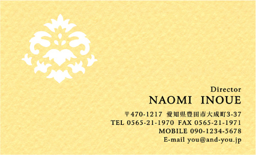 女性に人気 型抜き名刺(2色セット) NI-HALF-659 カテゴリ > 女性に人気 型抜き名刺(2色セット) 表 ※オンマウスで拡大表示いたします。 サイズ 91mm × 55mm このデザインで注文する このデザインでFAX注文 裏面デザインについて このデザインをお気に入りに追加 この商品に対するお問い合わせ 色違いデザイン NI-HALF-651NI-HALF-652NI-HALF-653NI-HALF-654 NI-HALF-655NI-HALF-656NI-HALF-658NI-HALF-706 NI-HALF-762NI-HALF-763NI-HALF-764 簡単料金計算 用紙を選択 カラー用紙/空 (凸凹した柄の入った用紙) 枚数を選択 100枚(50枚×2色)200枚(100枚×2色)300枚(150枚×2色)400枚(200枚×2色)500枚(250枚×2色) 金額をチェック 送料はこちら レビューコメント レビュー・コメントはまだありません。 閉じる レビューをお書きください このデザインのレビュー(ご感想)をぜひご記入ください レビュー入力欄 レビューは不特定多数の方がご覧になりますので、 個人情報などを含まれないようにご注意ください。 投稿していただいた内容について、弊社で不適切と判断した場合には、 お断りなく非掲載とさせていただく場合がございます。 レビュー記入者の種別 閲覧者 購入者 レビュー記入者の名前(ニックネーム) 下の数字を入力: