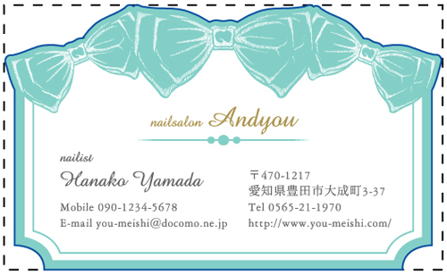 切り抜き名刺 NI-KIRI-152 カテゴリ > 切り抜き名刺 *リボンの形に添って切り抜いた名刺です。 表 ※オンマウスで拡大表示いたします。 切抜きサイズ 縦 55 mm×横 91 mm このデザインで注文する このデザインでFAX注文 裏面デザインについて このデザインをお気に入りに追加 この商品に対するお問い合わせ 色違いデザイン NI-KIRI-150NI-KIRI-151NI-KIRI-153NI-KIRI-154 NI-KIRI-155 簡単料金計算 用紙を選択 ハイトーン (最もスタンダードな白い用紙) マイルド (白味を少し抑えたオフホワイトの用紙) 光沢紙 ※両面印刷不可 ※ラインストーン不可半透明(トレーシングペーパー) ※両面印刷不可 ※ラインストーン不可半透明(NTパイル) ※両面印刷不可 ※ラインストーン不可 枚数を選択 203050100150200300400500 金額をチェック 送料はこちら レビューコメント 1 件のレビュー・コメントがあります。 ちりな 様(閲覧者) 2016年02月04日 ふわっとした色合いのリボンがお洒落ですね!ソフトなイメージで、ちょ... 続きを読む ちりな 様(閲覧者) 2016年02月04日 ふわっとした色合いのリボンがお洒落ですね!ソフトなイメージで、ちょっとノスタルジックな雰囲気を感じました。切り抜き名刺ということで、上の部分がリボンの形になっているんですよね。珍しい形の名刺なので、もらった人が絶対に驚いてくれますね。お名前と住所が左右に分かれていて、ちょっと珍しいなと思いました。こうやって余白をしっかりとってくれると読みやすくていいですね。 閉じる レビューをお書きください このデザインのレビュー(ご感想)をぜひご記入ください レビュー入力欄 レビューは不特定多数の方がご覧になりますので、 個人情報などを含まれないようにご注意ください。 投稿していただいた内容について、弊社で不適切と判断した場合には、 お断りなく非掲載とさせていただく場合がございます。 レビュー記入者の種別 閲覧者 購入者 レビュー記入者の名前(ニックネーム) 下の数字を入力: